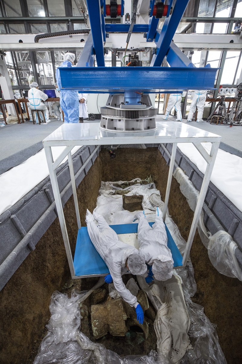 成都市投资8000余万元建成设施设备先进、功能齐全的成都考古中心,包括动植物、环境、冶金等8个科技考古实验室,以及恒温恒湿、分析检测、文物修复等11个文物保护修复实验室,磁法电法、地理信息、三维扫描等多种高新技术应用于考古发掘全过程。该中心还建有4500平方米的考古标本库房,配备文物储藏柜、环境调控设备、低氧充氮消杀系统等先进设施。