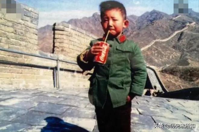 1979年的一天,北京八达岭长城上,一个身穿绿色军装的小男孩拿着一罐可乐在喝。